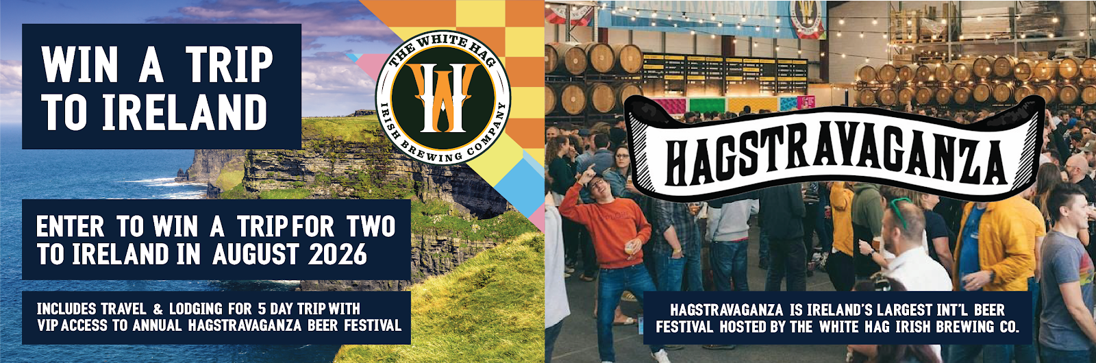Win the ultimate Irish adventure! Enter for your chance to experience a 5-day trip for two to Sligo, Ireland, including travel, lodging, and VIP access to the legendary Hagstravaganza Festival with The White Hag. Submit your entry below for a chance to raise a pint where it all began. Your trip to Ireland could be waiting. For submissions without a purchase, please see the rules for mail-in instructions.